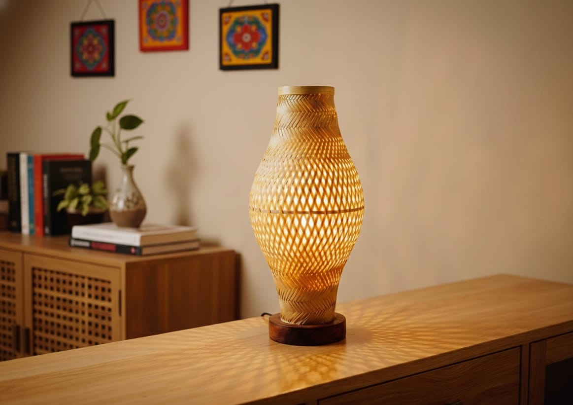 এই ল্যাম্পটি আপনার ঘরের পরিবেশকে শান্ত, আরামদায়ক এবং উষ্ণ করে তুলবে। এর বাঁশের বুনন থেকে নির্গত নরম আলো আপনার অবসর বা কাজের মুহূর্তগুলোকে আরও মনোরম করে তুলবে। এটি পরিবেশবান্ধব এবং ঐতিহ্যবাহী কারুশিল্পের একটি নিখুঁত উদাহরণ।